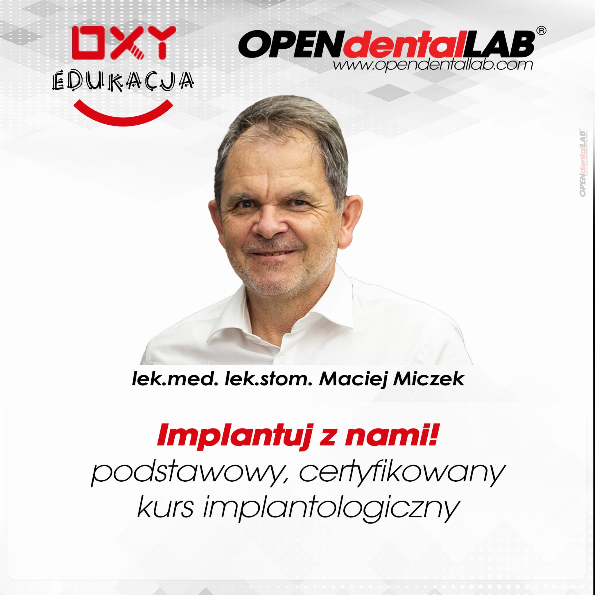 Oxy edukacja i Opendentallab zapraszają na certyfikowany cykl szkoleń prowadzonych przez lek.med. lek.stom. Macieja Miczka pt. Implantuj z nami!